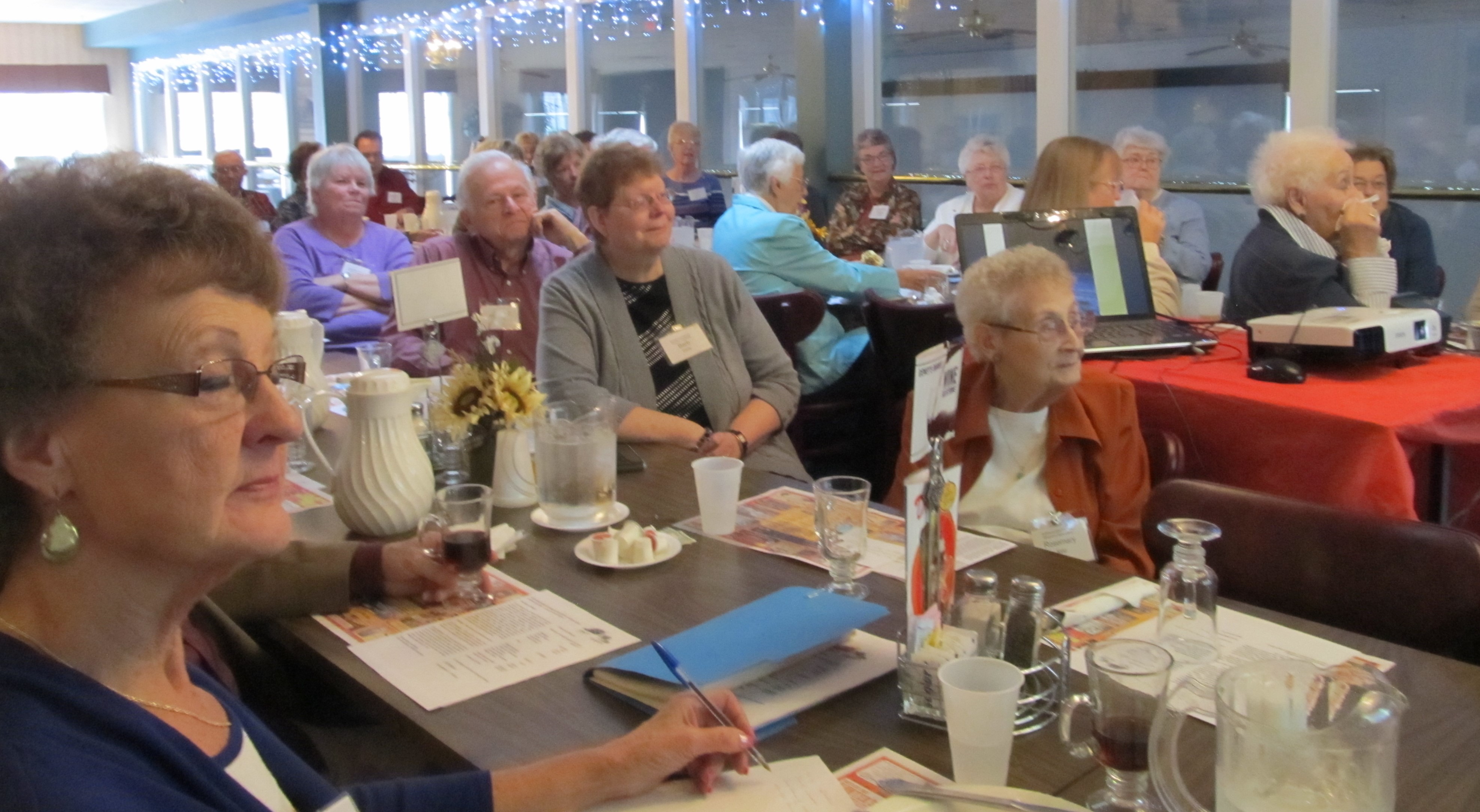 Ann and I were invited to address the Richland Area Retired Educators Association in Richland Center on Thursday of this past week at the White House Ramada Restaurant. We started out with a mighty fine brunch at 9:30 AM with sausage, bacon, eggs, sliced fruits and many pastry delights.