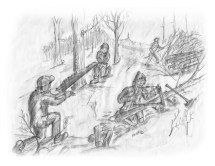 We’d take a breather now and then, deep in the woods. Sit on logs or tree stumps and drink water from a gallon jug that we brought along. Sometimes we packed a few sandwiches.