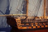 Wooden ships had decks made of planks. The space between planks was filled with a packing material called “oakum”, a tarred fiber used for caulking the joints. The joints were sealed with a mixture of pitch and tar. These blackened joints left a quite visible series of lines running the length of the ship and were spaced six to eight inches apart.