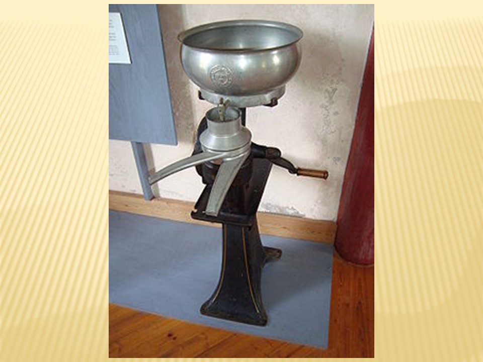 We carried the milk pail to the milk house and poured it in a large funnel that had a gauze filter in the bottom. We used a cream separator. Dad or Mom poured the filtered milk into the cream separator
