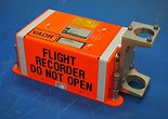 Inside the case, on shockproof mounts, are the plane’s flight data and cockpit voice recorders. The flight data recorder is continually fed information on the speed, direction, altitude, acceleration, engine thrust, engine performance, and position of the flight controls. A total of about 100 different parameters. The data is recorded on stainless steel tape which has the thickness of aluminum foil. When the tape is played back, it generates a computer printout.