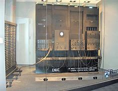 The United States made a mammoth computer using vacuum tubes and drum memories, called ENIAC, right after WWII. It had over 17,000 vacuum tubes, (a really fancy light bulb), weighed 30 tons, measured 100 feet long, 8 feet high, and 3 feet deep, and used over 15 kilowatts of power. Los Alamos labs used an ENIAC to develop the hydrogen bomb in the early 1950’s.
